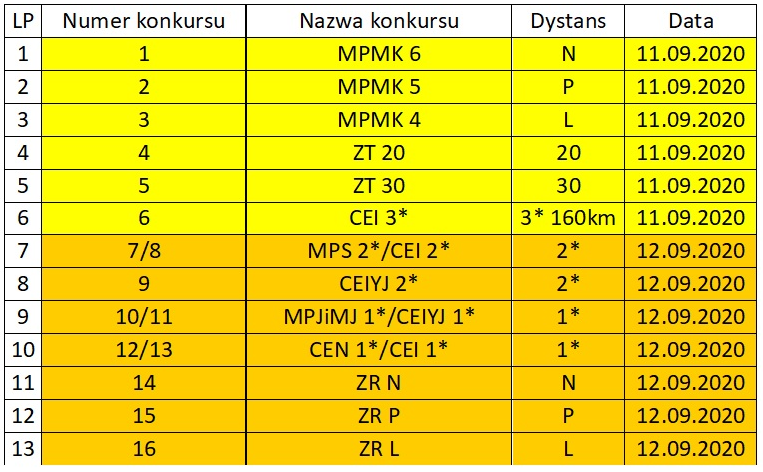 w dniu 11 września 2020 roku (piątek) zawodnicy mają szansę dosiąść dwóch koni
